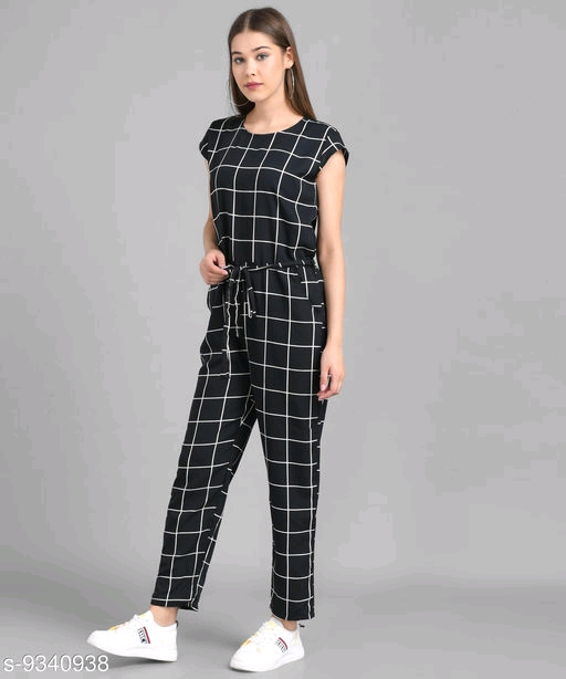 Elizy Women Black Check Front Knot Printed Jumpsuits